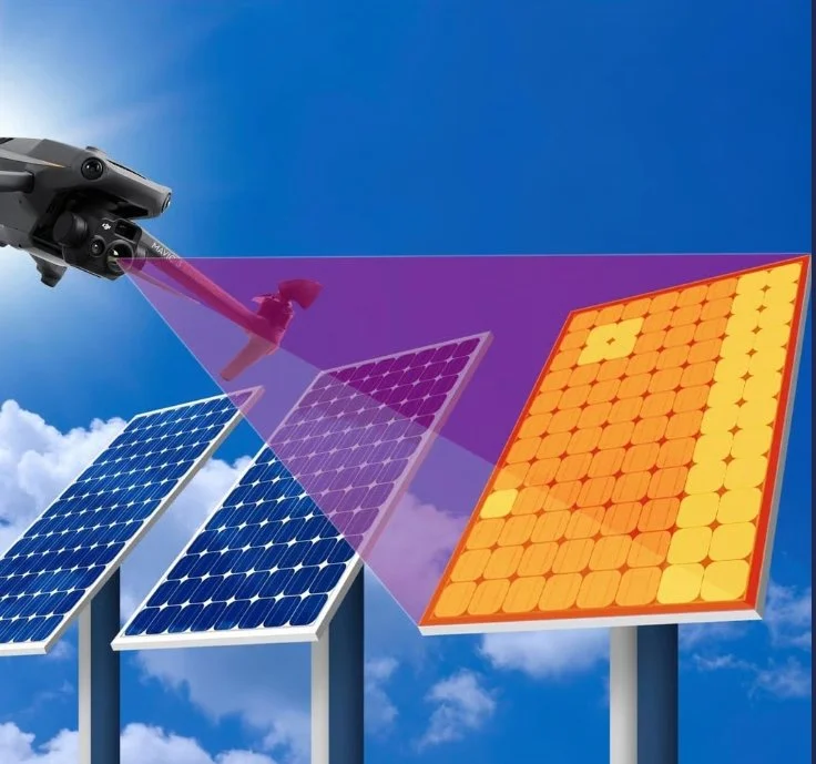 Thermal and high-resolution aerial imaging used to detect heat anomalies, identify solar panel defects, and locate areas of wasted energy. This technology helps reveal issues in infrastructure and electrical systems that are not visible during standard inspections.